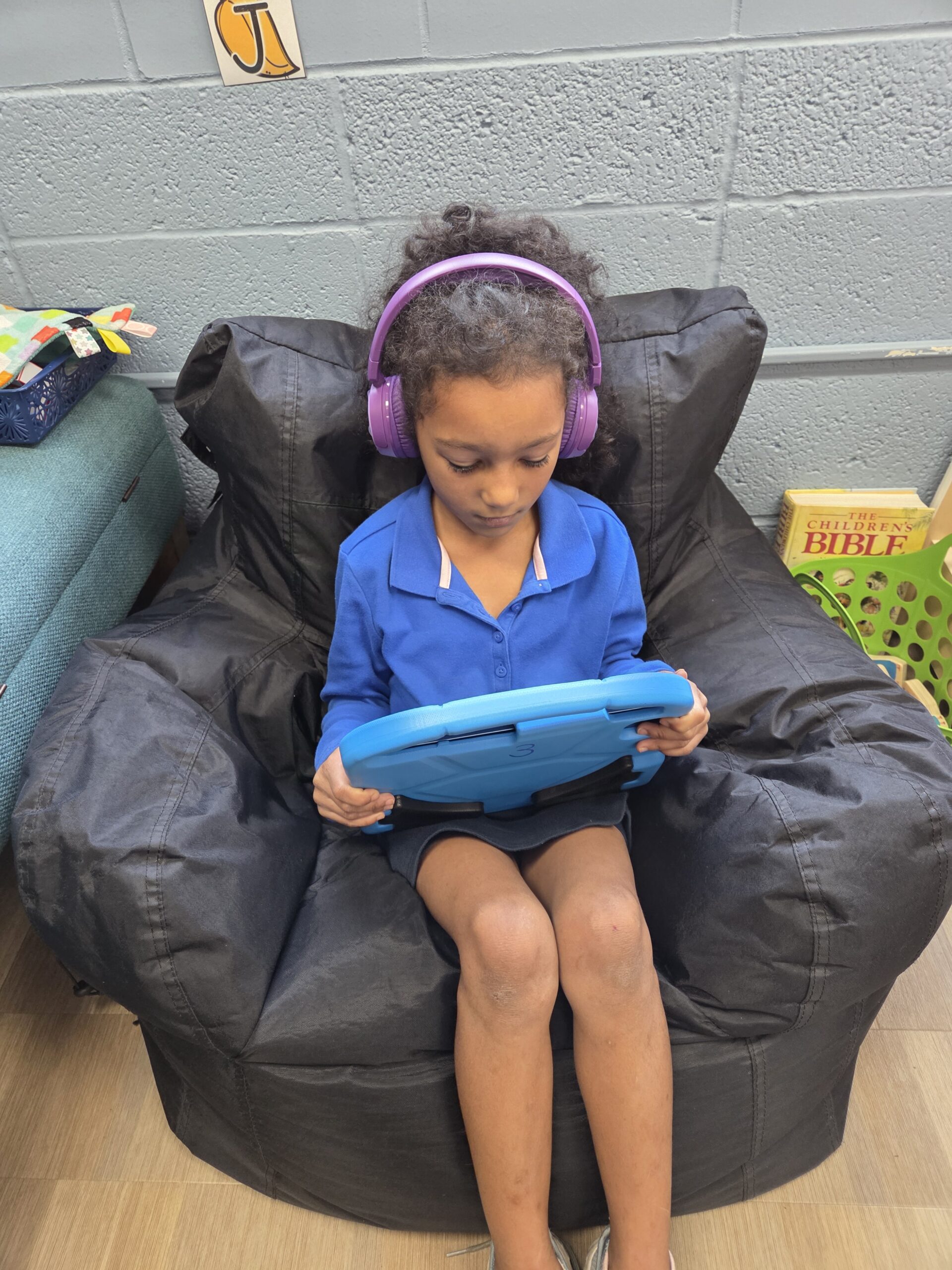 The impact of this technology is huge for reading development. These new iPads and headphones are transforming how kindergarteners engage with literacy: